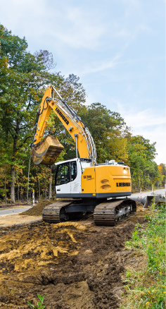 The Liebherr R 936 Compact Litronic is a crawler excavator manufactured since 2019. It weighs 36.95 tons and has a transport length of 10.95 meters, a transport width of 3 meters, and a transport height of 3.2 meters. It has a tear-out force of 204 kN and a dredging depth of 8 meters. The maximum reach horizontal is 11.74 meters, and the bucket capacity is 2.15 U/min. It has a track width of 600 HP and comes equipped with air conditioning, a blade, material handling excavator, and overload alert.
