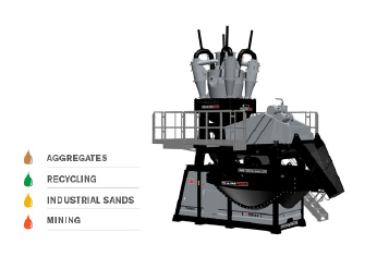 The Terex FM Compact™ range are static sand washing and classification units designed to be both cost and energy efficient on a single compact chassis. The range utilises centrifugal force within the hydrocyclone(s) to remove clay, silt and slime from sand to bring it into the desired specification. The range combines a collection tank, centrifugal slurry pump(s), hydrocyclone(s) and a dewatering screen to produce up to 2 clean sands.